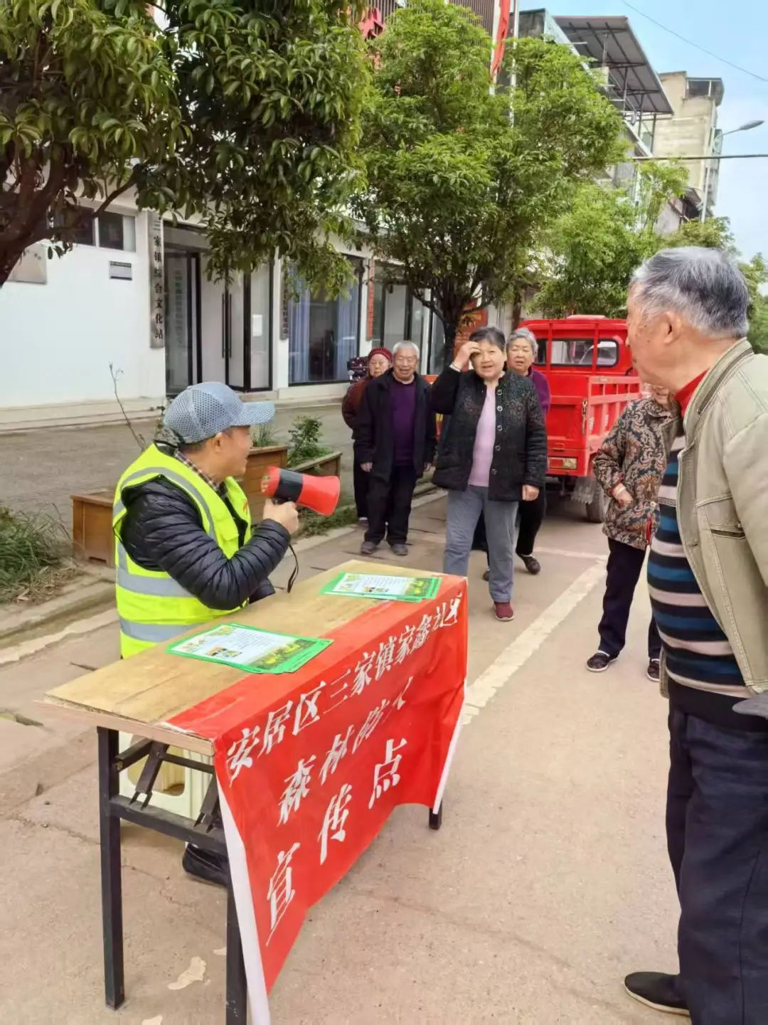 各村社区在主要路口以及进山要道设立森林防火宣传点,构建起守护森林安全的前沿阵地。工作人员和志愿者们不畏辛苦,坚守岗位,通过多种形式向过往群众普及森林防火知识。宣传点周边,一条条醒目的横幅高高悬挂,时刻警示着人们森林防火的重要性;一份份精心准备的宣传资料被递到群众手中,内容涵盖森林防火法律法规、野外用火安全注意事项以及应急避险技能等关键信息。