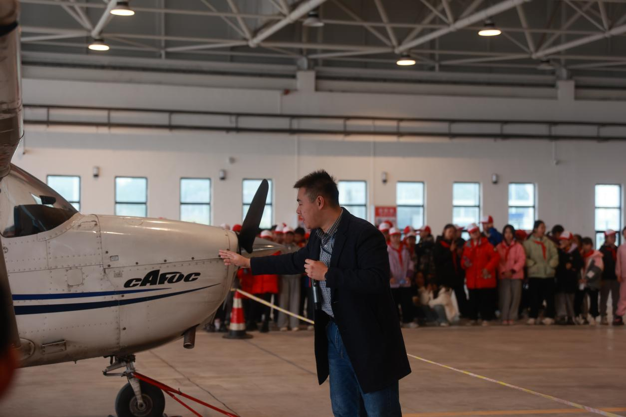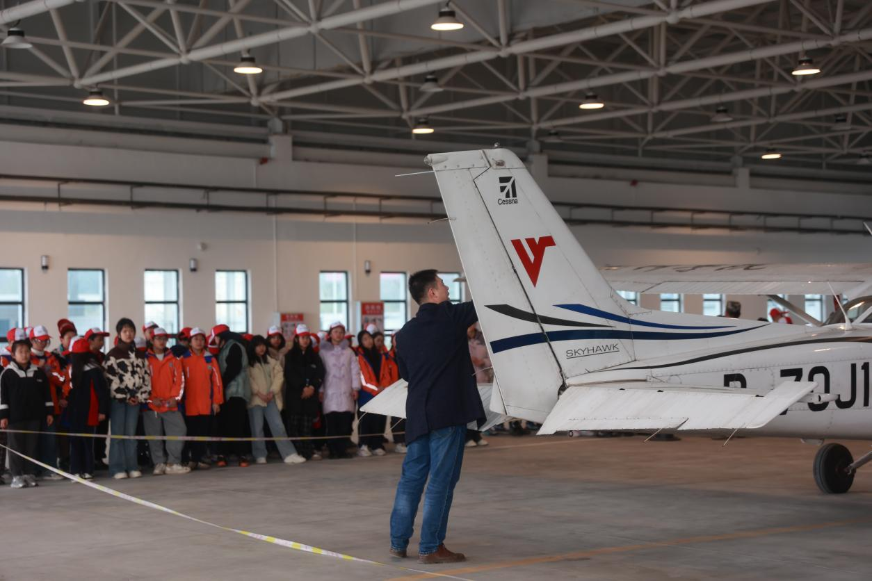 在航空知识讲座上,学生们仿佛被带入了一个全新的航空世界。中国民航飞行学院遂宁分院的专业教师用生动的讲解和丰富的案例,为学生们描绘了一幅幅航空领域的壮丽画卷。学生们听得如痴如醉,不时举手提问,与讲师进行互动,现场气氛热烈而活跃,并实地参观了塞斯纳172训练机。