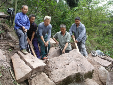 分水镇石工号子。分水镇石工号子是省级非物质文化遗产保护项目之一,该项目原汁原味,别具一格。在打石、撬石、抬石的劳动过程中,在用石头铺路、修桥、筑堤、筑坝、建造房屋时,人们都在哼唱或吆喝。这种号子的种类繁多,可达一百七十余种。石工号子腔调丰富、风格独到、韵味独特,最早传唱的人可唱九十二腔、八十二调。石工号子从轻唱至四言八句,到编成歌谣传唱,形成了一派独特的石工号子韵味。现在流行传唱的有:大锤号子、拗料号子(又分大石料、小石料)、抬石号子、转转腔、大五声、大帮腔、四平腔等七种,最为普遍的是:大锤号子、拗料号子、四平腔三种。