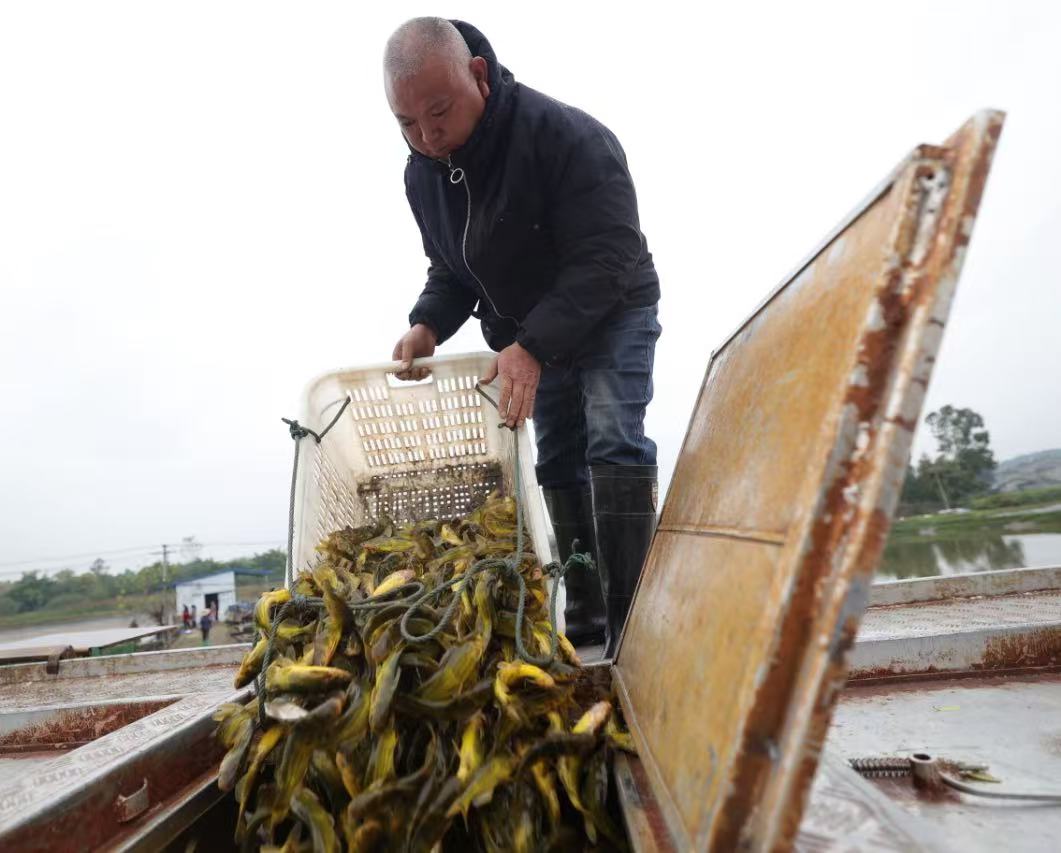 “我从眉山过来收鱼,收购了一万多斤,拉到成都去买,这个鱼大小适中,颜色也好。”收购商王杰说。