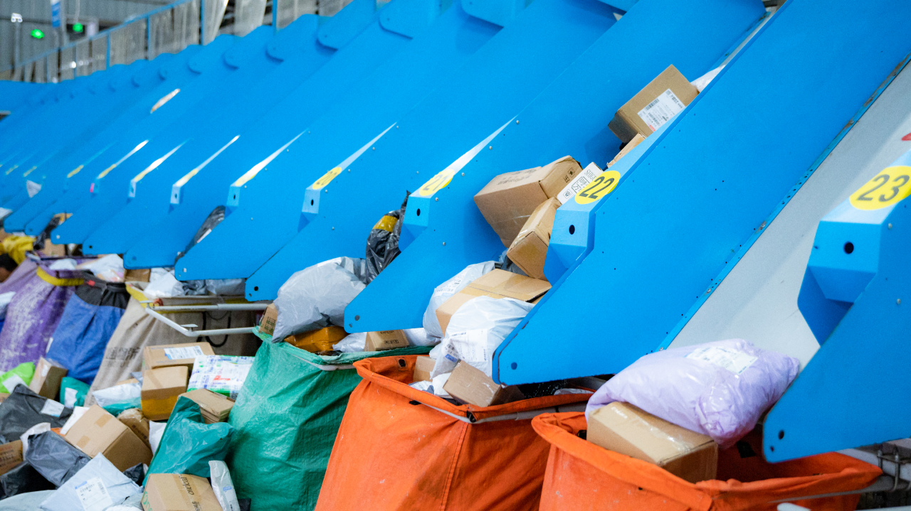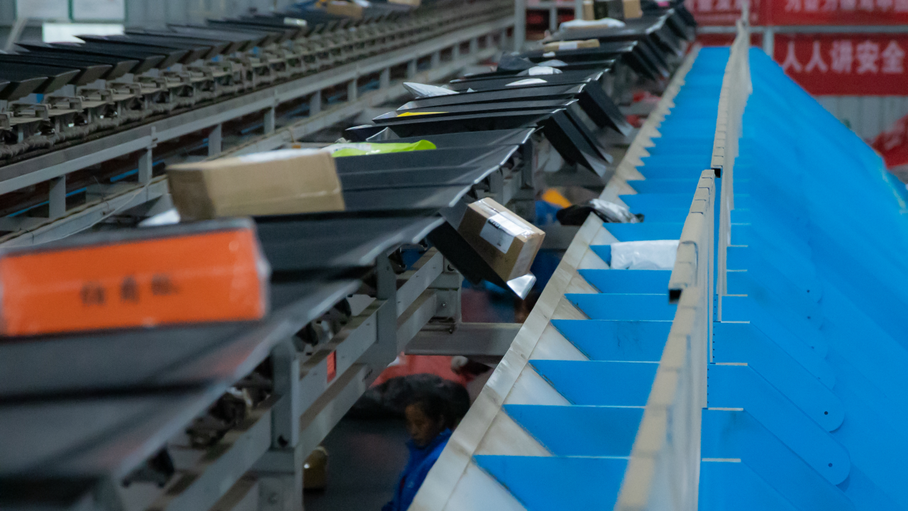 自动化分拣线上的包裹