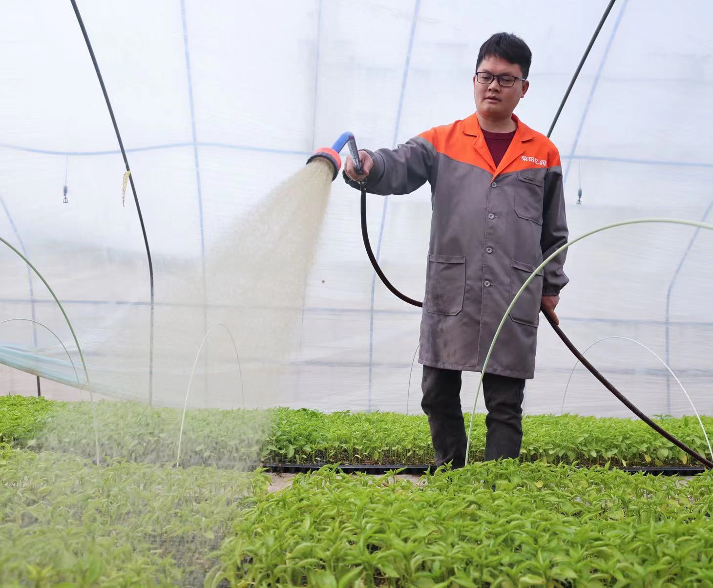 与此同时,在5公里之外的杨家坝村,荣田亿润家庭农场农场内也是一片热火朝天的春耕备耕景象:辣椒育苗大棚里一片翠绿,穴盘内种苗生长旺盛,农场主正对辣椒苗施加水溶肥。另一侧的大棚内工人正对辣椒地施加有机肥。据农场主奉军介绍,自去年11月以来,农场全力抢抓有效时节,积极进行甜椒、线椒育苗,截至目前,160余亩辣椒已全部完成育苗工作。