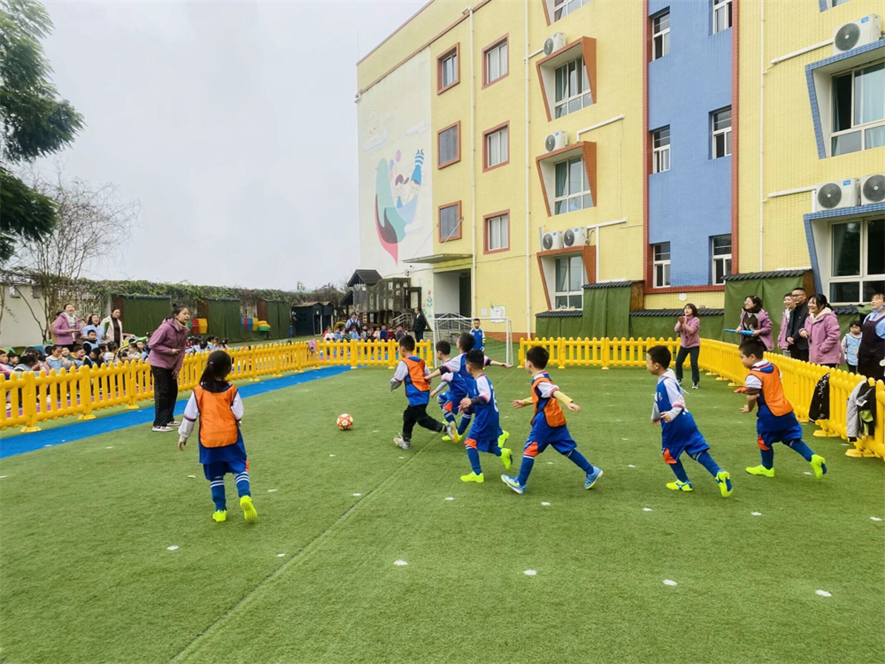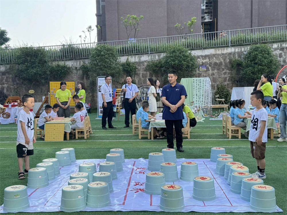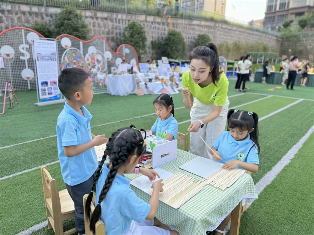 助幼儿了解中国优秀传统文化的内涵,为孩子的心灵沃土播撒颗颗幸福种子,从小树立文化自信。幼儿园深化拓展性的特色课程,在统编课程与园本课程框架下,依托“足乐竹趣”特色,为全园幼儿免费开设了足球、篮球、竹编、象棋、科技、绘画、手工、舞蹈、体育等特色课程,为孩子们提供了广阔的发展空间。又特别是今年春季学期,新开设了竹趣特色课程,传承的是安居区非物质文化遗产——石洞赵氏灵广竹编,有效激发了幼儿爱劳动、爱家乡、爱祖国的热情。