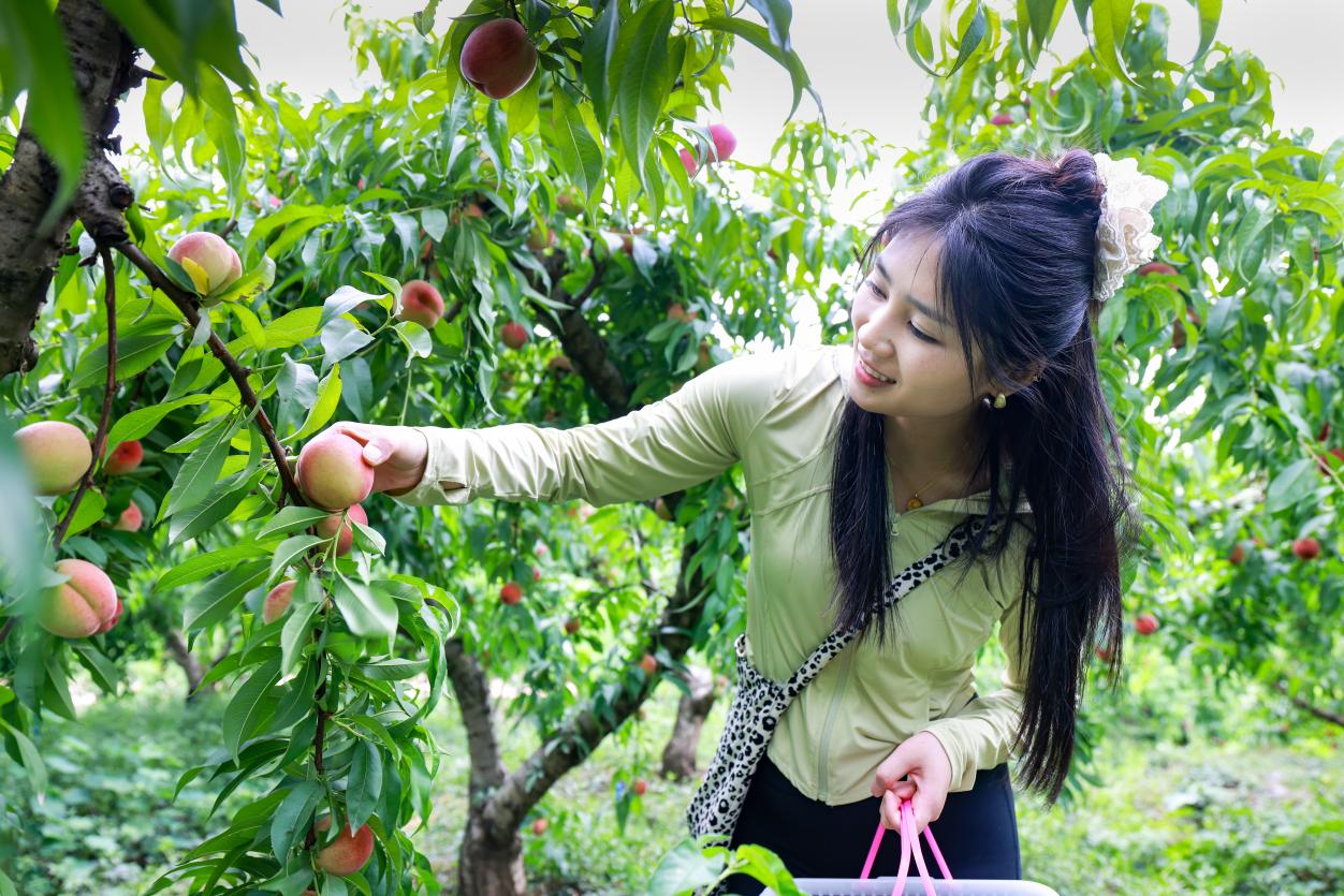 “平时工作忙,体验收获的机会少。今年我在这认领了一棵桃树,早就盼着来体验采摘的这一天了。”来自遂宁的游客文艳正小心翼翼将刚摘下的桃子放入筐中,“今天是第一次来采摘,口感不错,又脆又甜,准备带回家给家人和朋友分享。”
