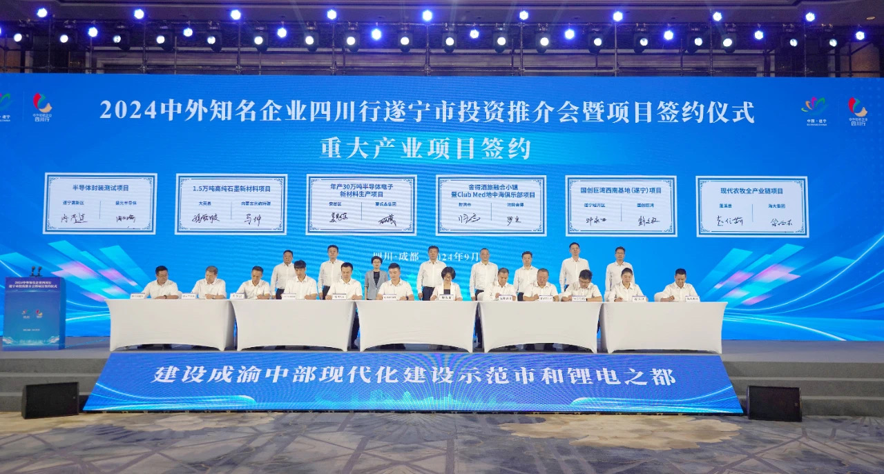 9月24日,2024中外知名企业四川行遂宁市投资推介会暨项目签约仪式在成都举行,安居区与遂宁地区投资金额最大的夏氏鑫集团年产30万吨半导体电子新材料生产项目成功签约,这标志着安居区“二次招商”再结硕果。