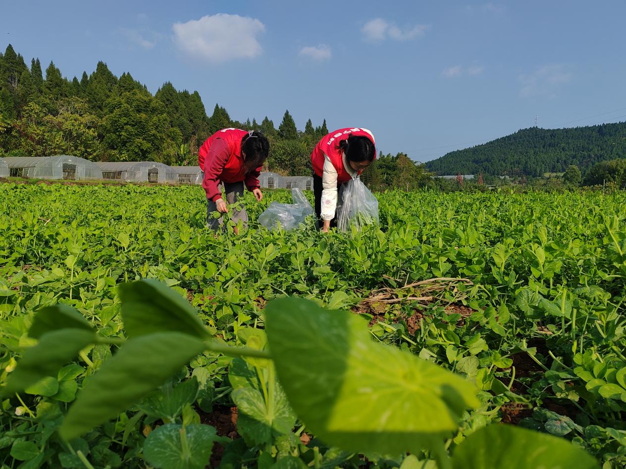 在基地大棚内,一排排无筋豆郁郁葱葱,挂满枝头,长势喜人。工作人员穿梭其间,正在提框采摘。“今天除了采摘的1000斤无筋豆要送到商超以外,也在同步采摘豌豆尖和萝卜。”遂宁市美宁农牧业科技开发有限公司售后部主任黎丹说。