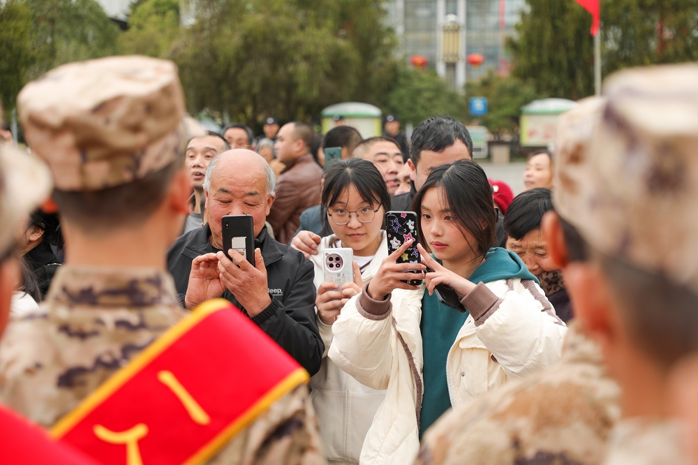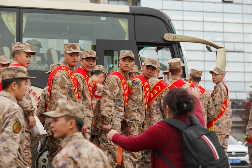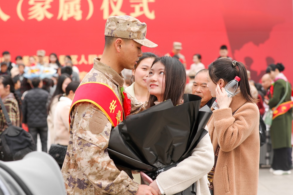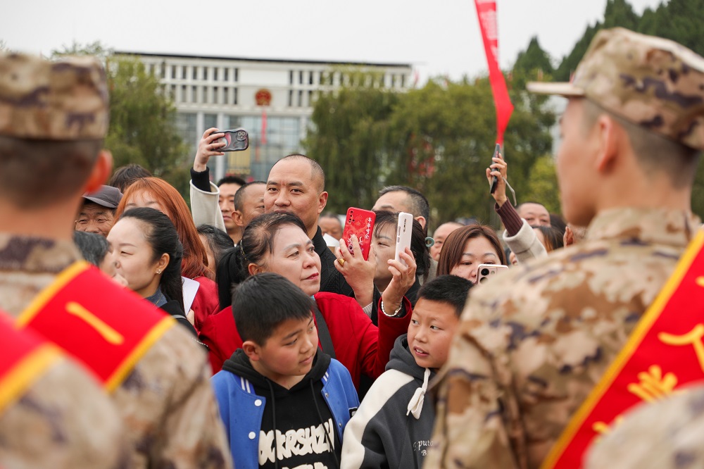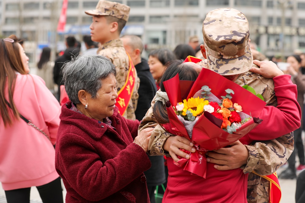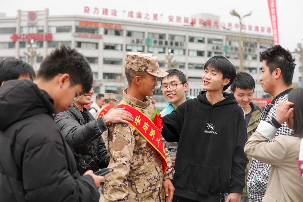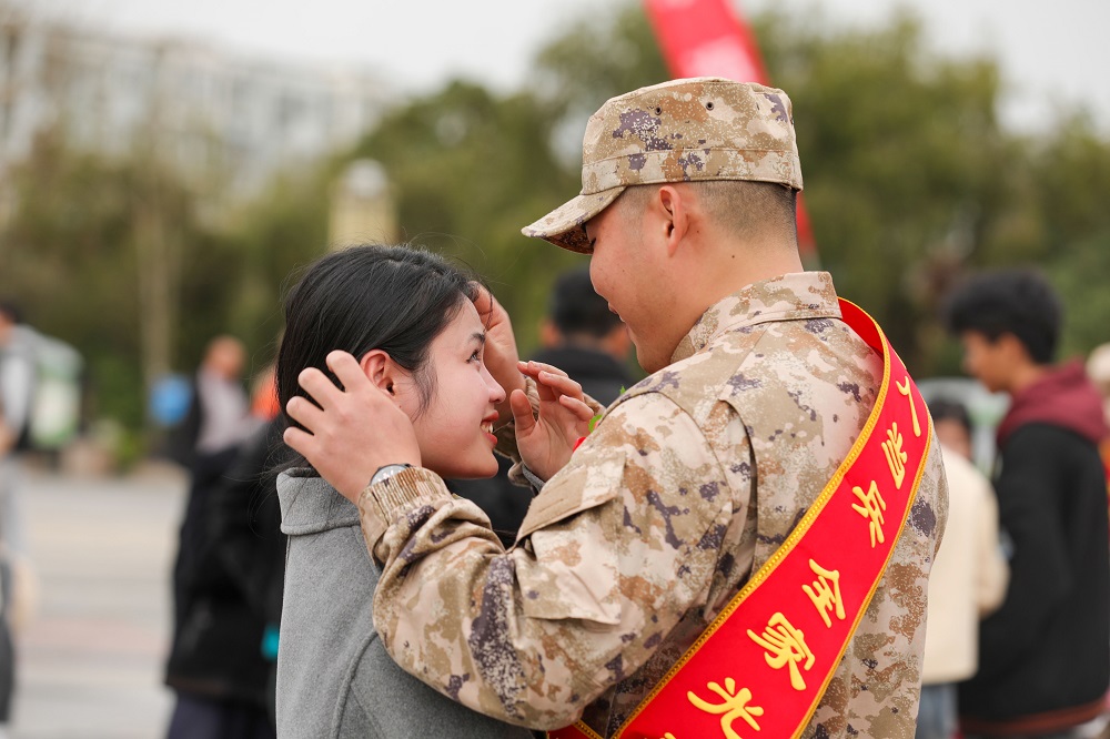 含泪带笑的嘱托,充满了深情和不舍。欢送现场,有昔日同学变成亲爱战友的深厚情谊,也有依依不舍的小情侣互诉衷肠,更有眼神里充满骄傲与自豪的新兵家长对孩子的殷切希望……不管身份如何,他们都带着同样的盼望:苦练本领,建功军营,用实际行动回报党的信任和社会的期望。