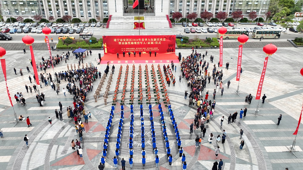仪式宣布了新兵入伍令,进行了新兵宣誓;现场领导为第一排新兵代表、军人家属代表佩戴红花,并为立功受奖现役军人家属代表进行了颁奖。