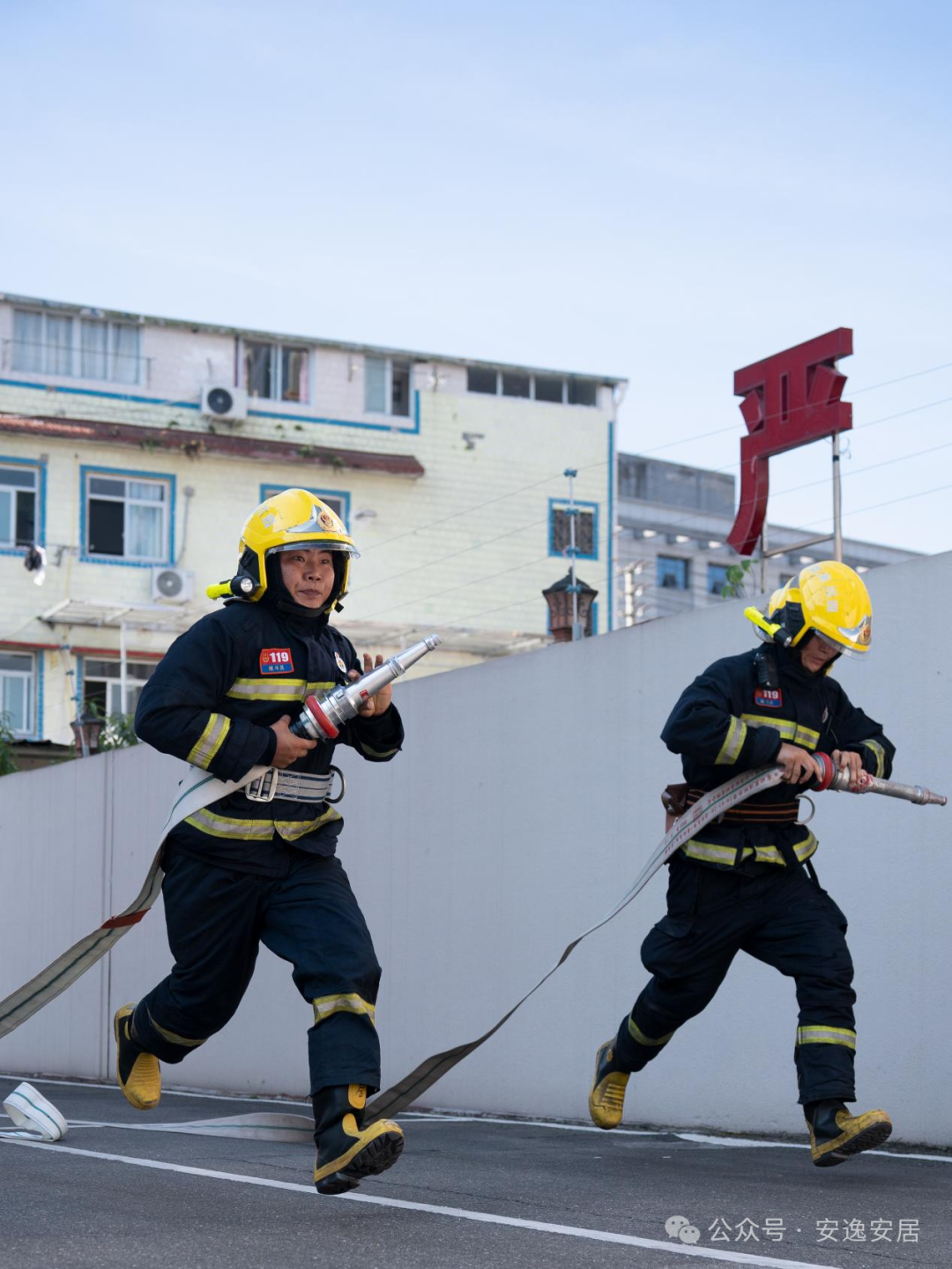 这项训练考验消防指战员的体力和速度,通过不断训练,指战员可以在火灾现场更快速、更有效地进行火灾扑救。