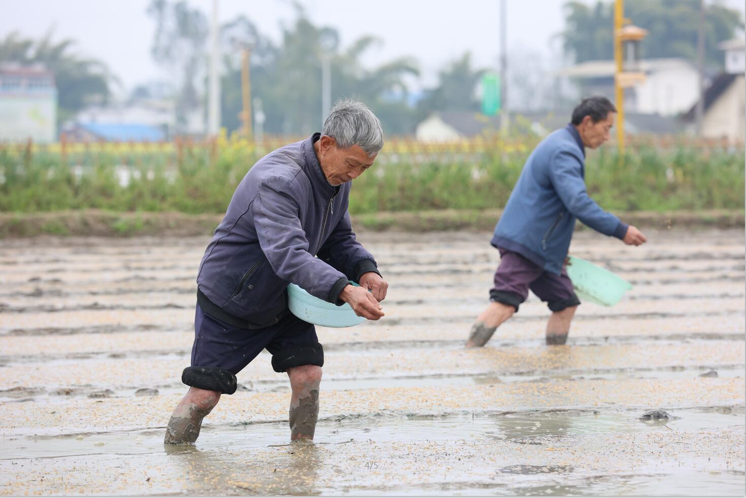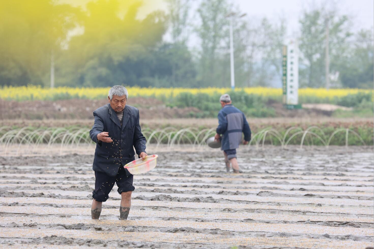 3月20日,在遂宁市安居区三家镇芦城村中稻+再生稻百亩高产攻关试验基地里,村民们正在忙碌着播种育秧。与普通育秧所不同的是,此次育秧采用了具有高产潜力的稻谷,并进行了浸湿处理。