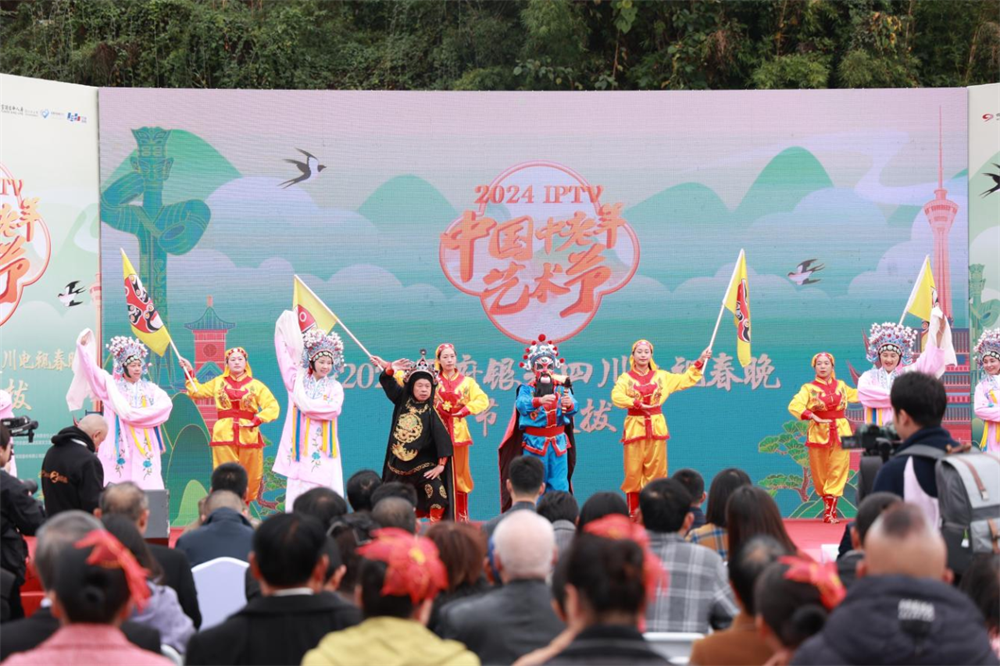 11月18日,“2024IPTV中国中老年艺术节暨2025天府银光四川电视春晚节目选拔活动”在安居区海龙凯歌农文旅园区盛大开幕。安居区委常委、区委办主任聂鹏,四川金熊猫新媒体有限公司IPTV事业部总监杨波出席并致辞。