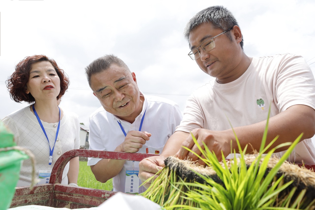 在三家大米现代农业园区,观察团见证了“效率革命行动”在田间地头的立体呈现:智能化机械插秧现场,农机穿梭间勾勒出标准化种植的线条;智慧管理平台实时抓取土壤墒情、气候数据,为种植决策提供“数字大脑”;农产品展示大厅里,从稻谷到深加工产品的全链条展示,诠释着“一粒米”的产业升级路径。