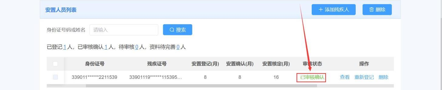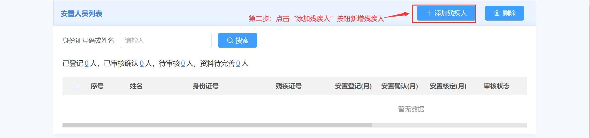 第二步:点击“添加残疾人”进入残疾人安置管理页面