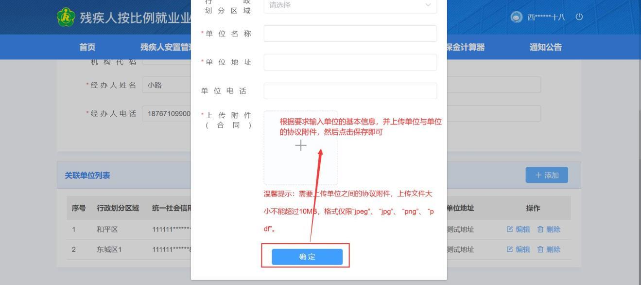 第四步:根据要求输入关联单位信息,并上传单位与单位之间的劳务派遣协议附件,或者与关联公司之间的证明材料。