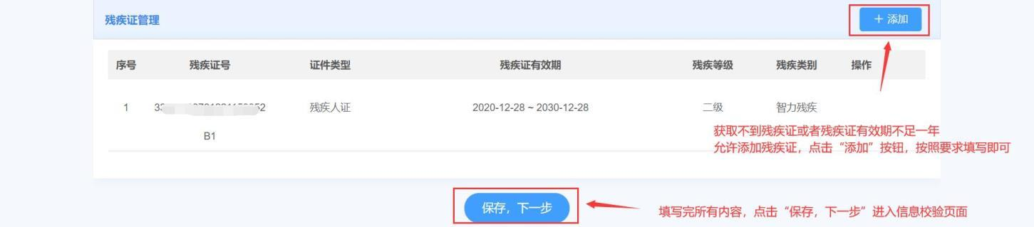 第三步:按照页面要求填写完内容之后,点击“保存,下一步”进入人员信息校验页面。