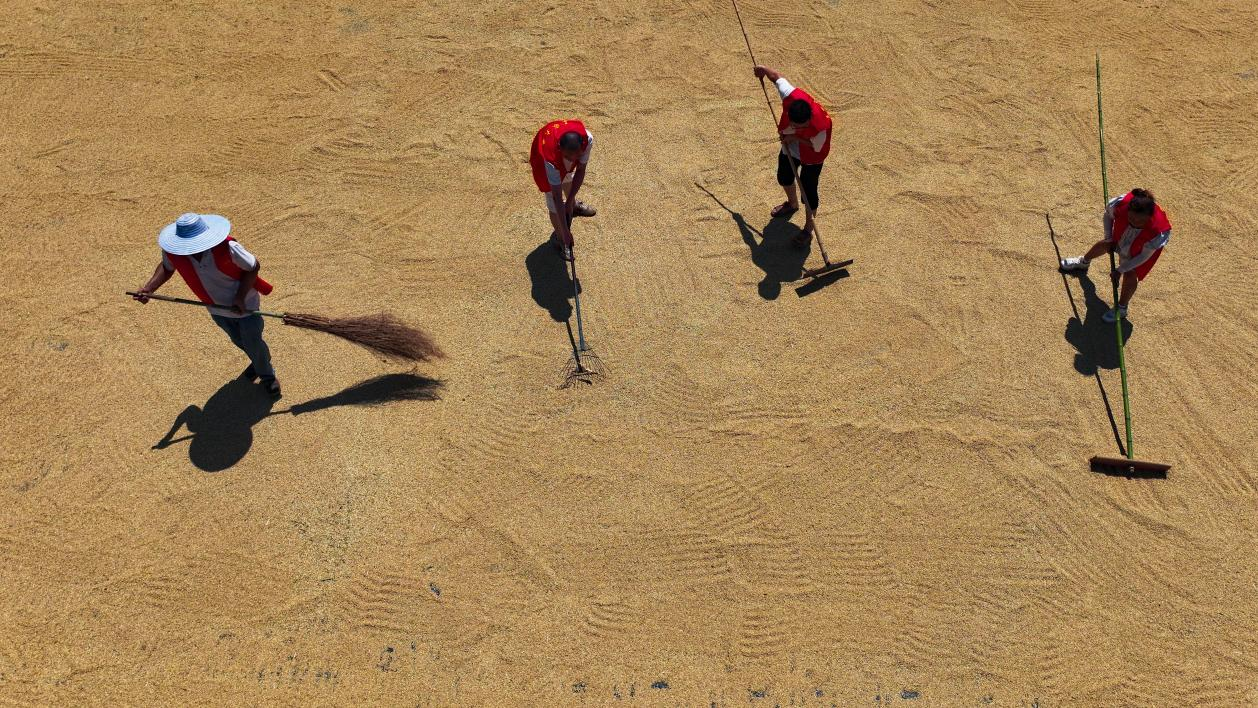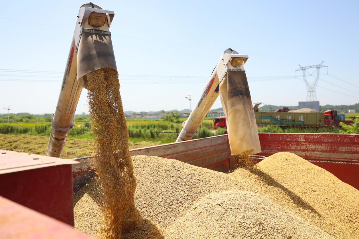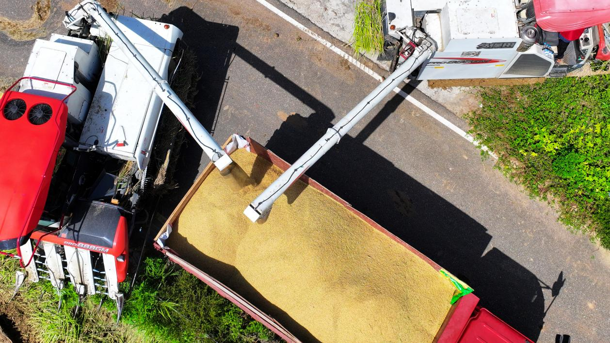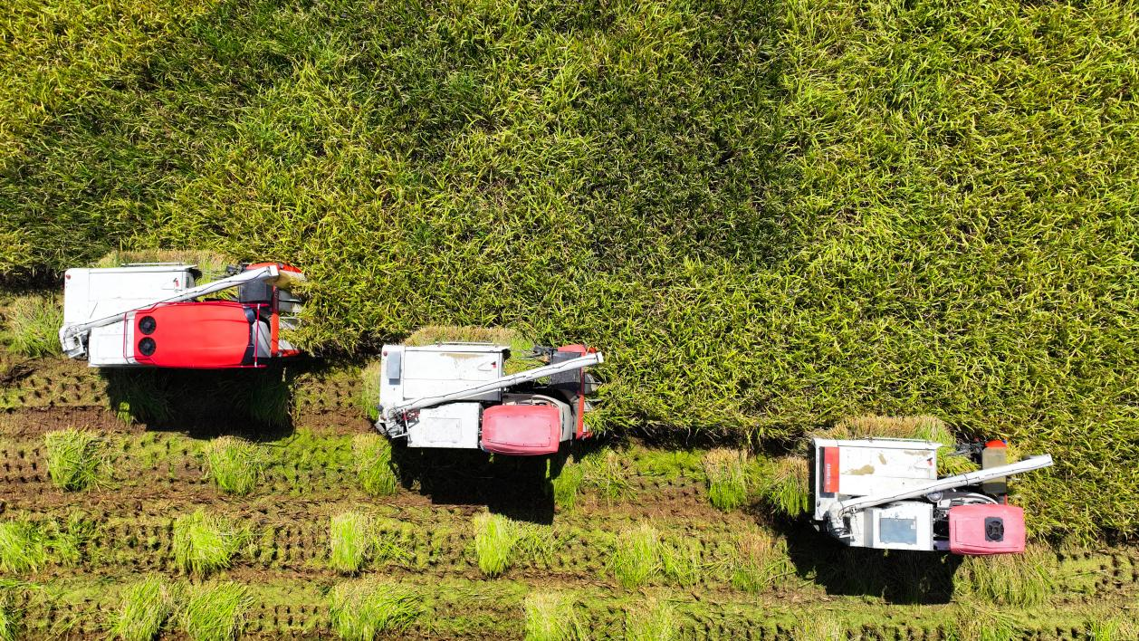 8月11日,在安居区三家镇三门村,当地种粮大户抢抓晴好天气,组织收割机在稻田里来回穿梭,确保秋粮颗粒归仓。今年安居区种植水稻25.8万亩,目前已陆续进入成熟期,预计9月中旬收获完毕。