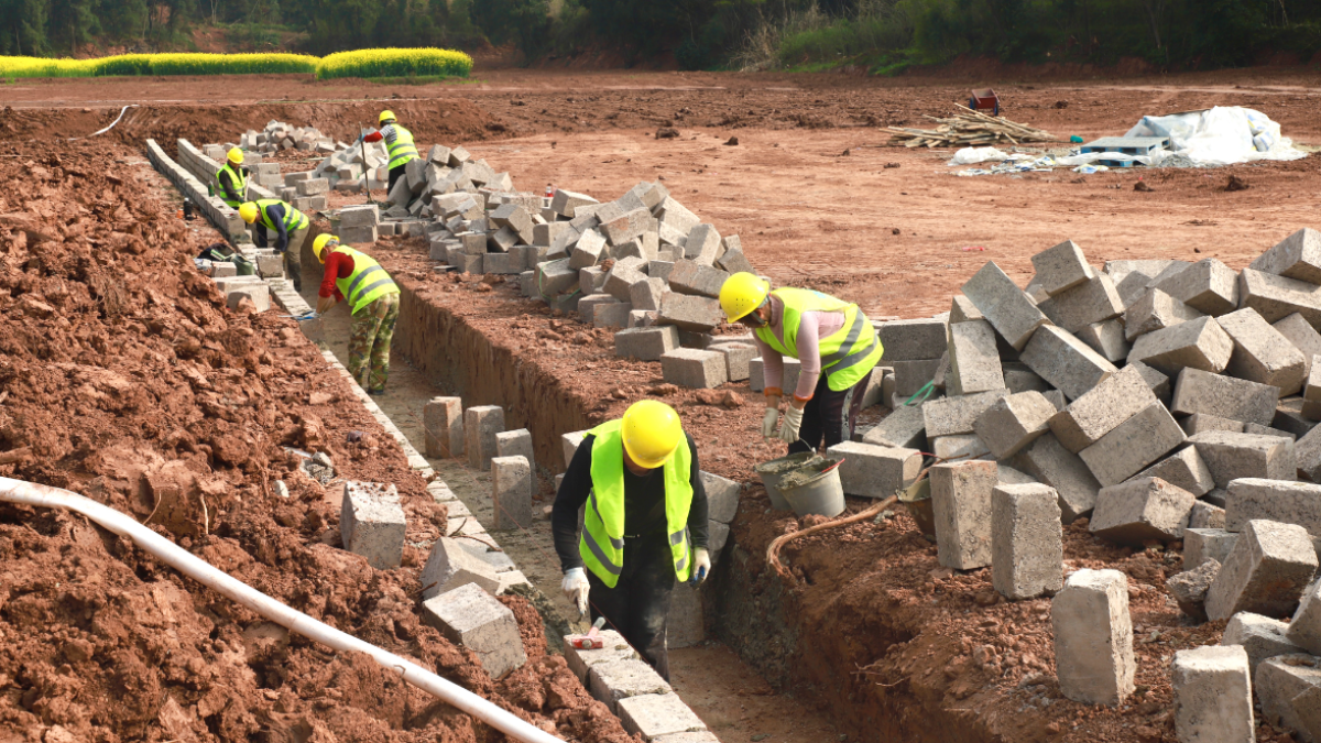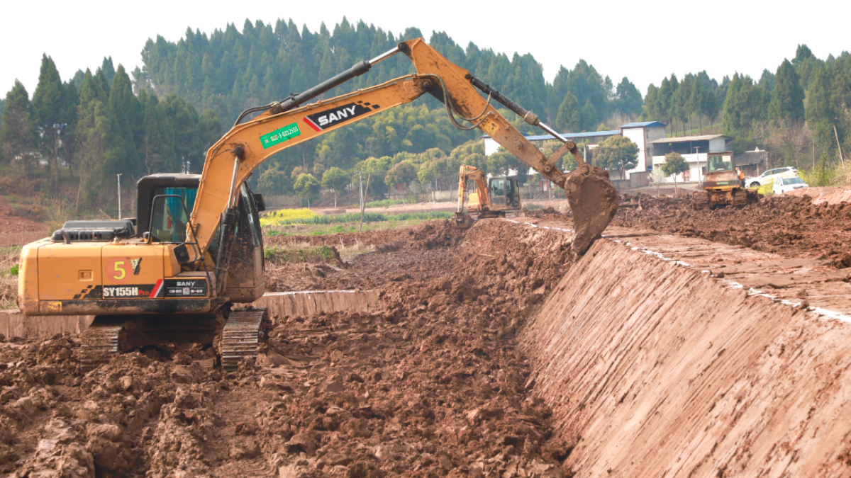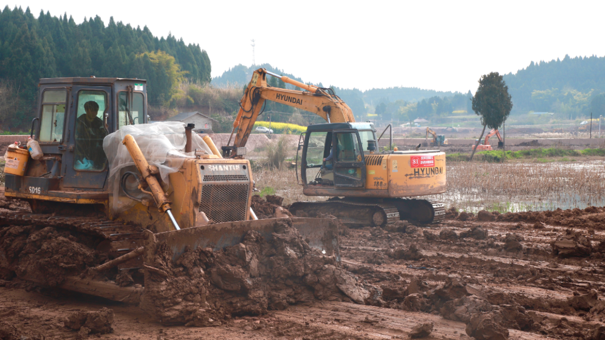 “目前团山宝村、万和村的建设点位有8个以上,正在进行田土改造、调整沟渠、山坪塘建设等工序,投入工人总人数80人至100人,投入挖机、铲车、推土机等各类机械70台以上。”安居镇高标准农田建设一标段现场负责人胡勇军介绍,这两个村总体施工进度已达到了40%以上,田地这个月底就可以交付给老百姓种植使用。