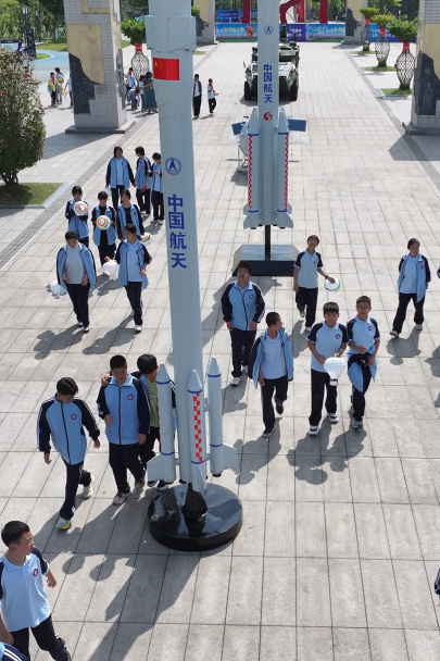 在景区内,歼-20、歼-31战斗机航空航天模型列阵而立,宛若微型“航空航天博物馆”。孩子们手持自制的七彩热气球模型穿梭展区间,科技的火种与童真的笑脸在此刻交织成最动人的风景。
