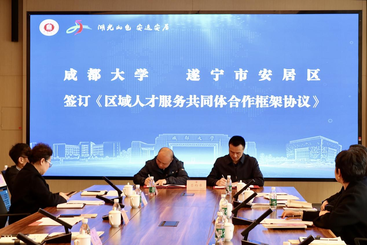 活动期间,安居区立足“2+2+1”现代产业体系,结合成都大学资源与智力优势,签订《区域人才服务共同体合作框架协议》,机械工程学院、食品与生物工程学院、化学化工学院、临床医学院分别与四川江淮、阿宁食品、佳威化学、区人民医院互授院企合作牌,充分聚集地方服务高校、高校为地方高质量发展提供人才保障的工作优势,进一步推动“校地协同促就业,打造区域人才服务共同体”走深走实。