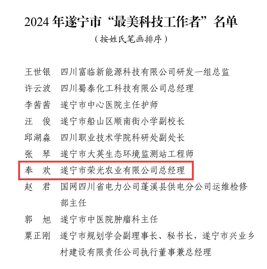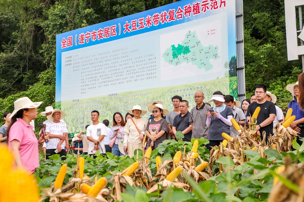 在推动遂宁大豆现代农业园区建设中,奉欢率先垂范,就地就近为市内各地来参观的农技干部、农业大户等现场教学,并受邀成为农业农村部管理干部学院“崇农云讲堂”云平台讲师,为全国各地的农民合作社带头人、新型农业经营主体负责人进行线上玉米大豆带状复合种植技术案例教学。