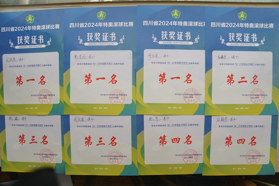 近日,四川省2024年特奥篮球、滚球比赛举行,安居特殊教育学校派出8名运动员参加滚球比赛,最终斩获2枚金牌、1枚银牌和1枚铜牌。
