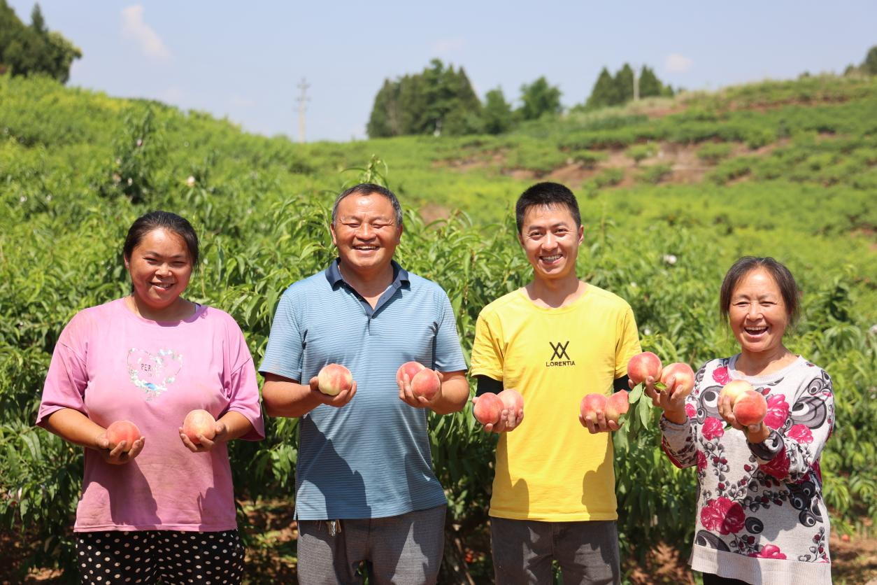 △5月22日,在拦江镇五琅坝村,村民展示刚采摘的胭脂脆桃