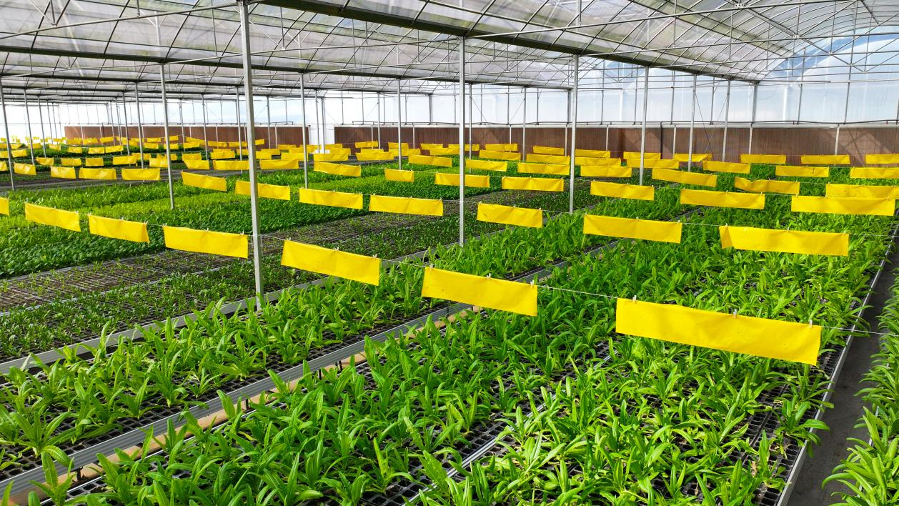 △无土栽培大棚,配备水肥一体化自动灌溉系统、智能控制温度湿度等设备,为农作物适宜的生长环境,实现四季供应新鲜蔬菜