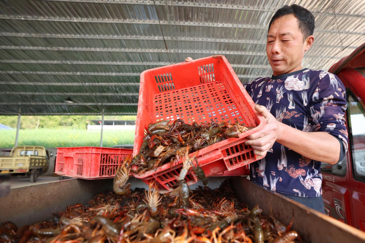 △3月22日,在分水镇稻虾交易中心,村民们忙着分拣小龙虾,准备运往市场销售