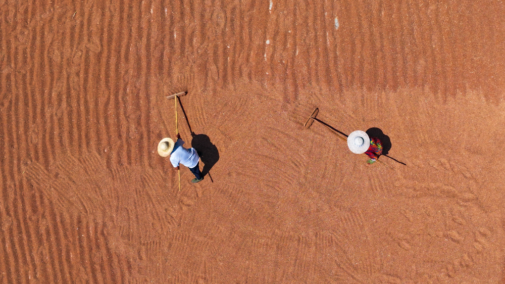 △8月7日,横山镇石山村,村民正晾晒高粱