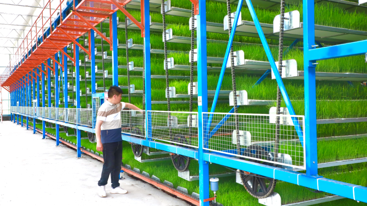 水稻大面积机械栽插的背后,源于当地工厂流水式育秧。今年3月,位于园区内的三家大米育秧中心正式建成使用,从田间“搬进”工厂,育秧实现了“坐电梯”“穿山洞”。