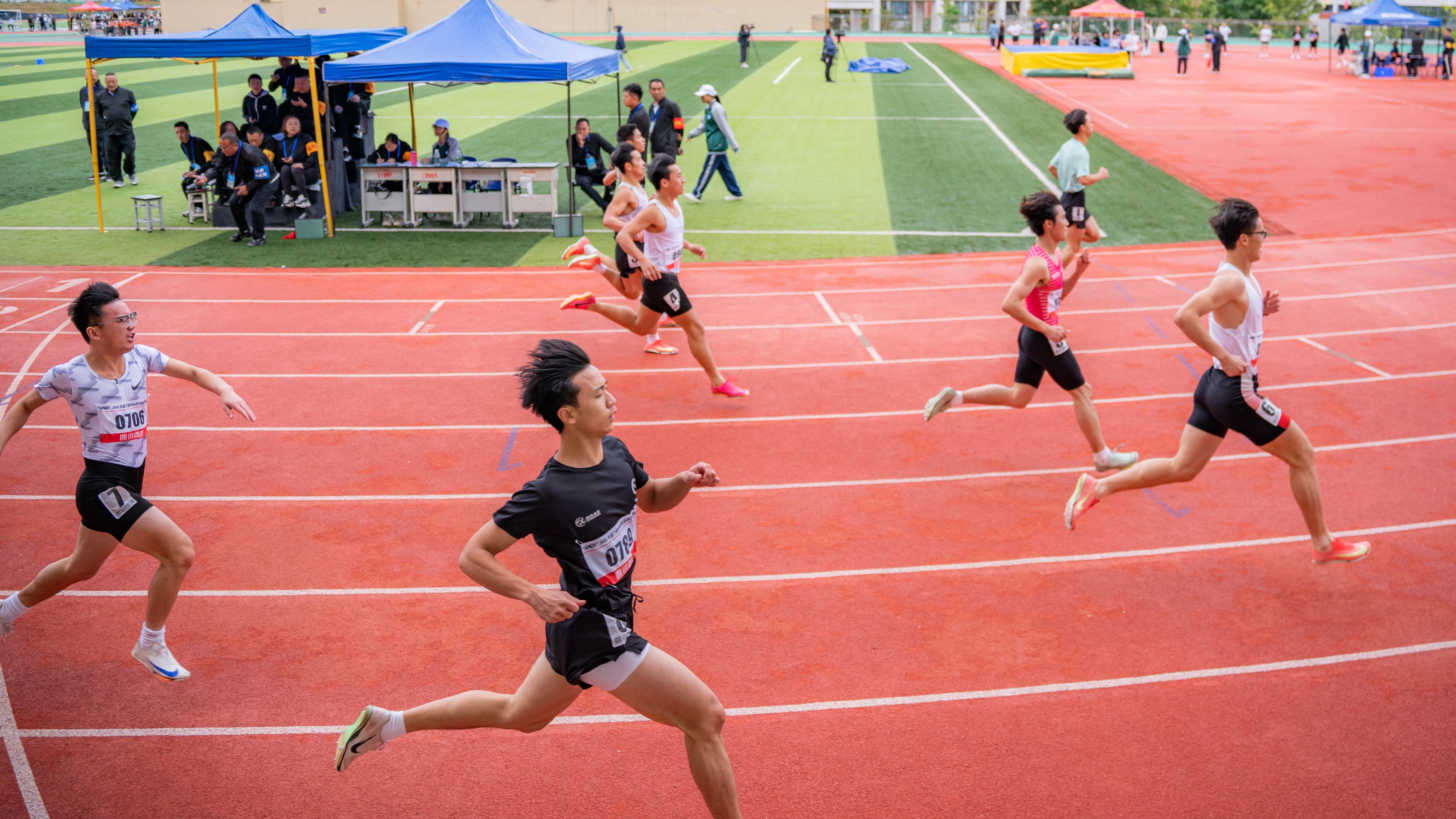 本次赛事为期三天,设小学、初中、高中、中职四个学段、男女共8个组别同场竞技,涵盖50米、100米、200米、400米、800米、4×100米接力、跳高、跳远、垒球掷远等多个项目。